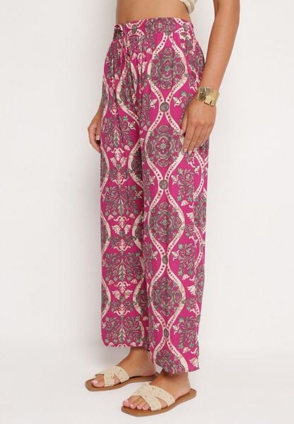 Fuksjowe Szerokie Spodnie z Wiskozy w Stylu Boho z Gumką w Pasie i Wysokim Stanem Tiamaylee