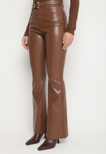 Brązowe Spodnie Dzwony z Imitacji Skóry Vebora