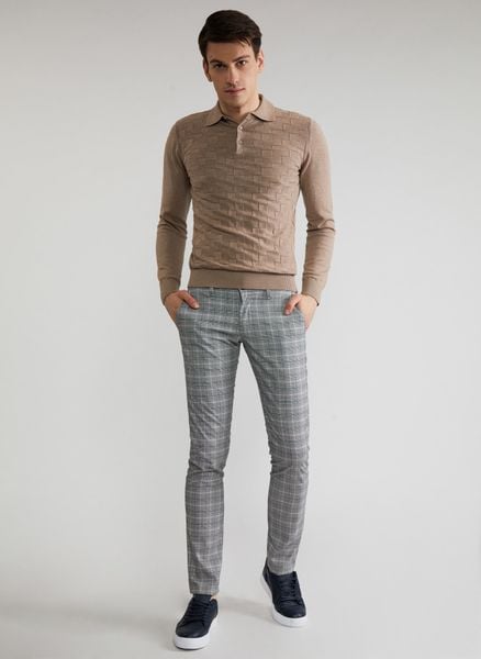 Spodnie męskie w kratę – Pako Lorente. Modne spodnie w kratę. Szare spodnie męskie z długimi nogawkami. Skład: 64% poliester 34% wiskoza 2% elastan