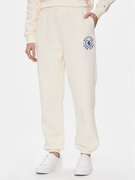 Tommy Hilfiger Spodnie dresowe Crest Sweat Pant WW0WW40601 Écru Regular Fit
