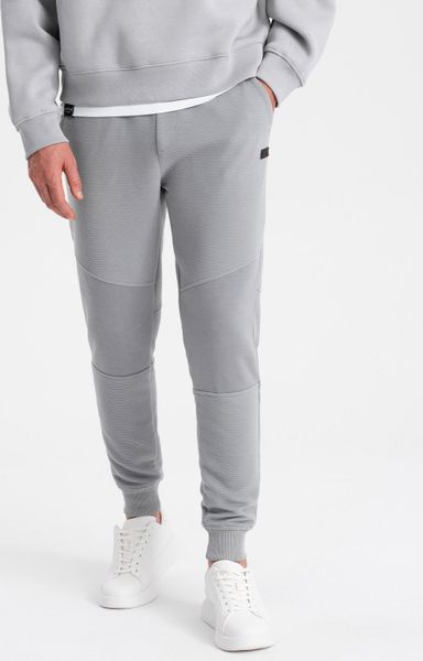 Ombre Spodnie dresowe męskie z tkaniny ottoman - szare V5 OM-PASK-0129 M