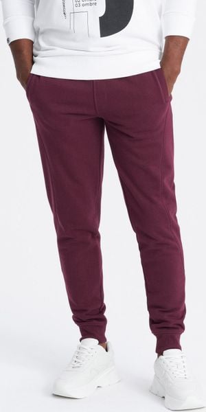 Ombre Męskie dresowe spodnie bawełniane joggery BASIC bordowe V3 OM-PABS-0174 M