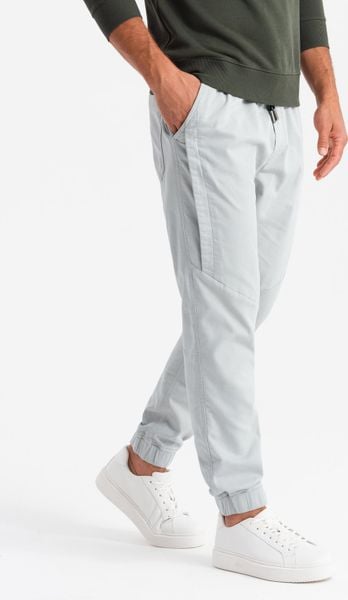 Ombre Męskie dzianinowe spodnie joggery z ozdobną plisą jasnoszare V3 OM-PAJO-0202 M