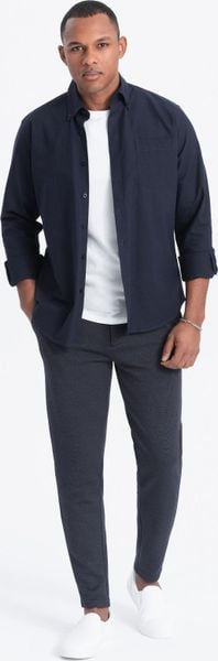 Ombre Spodnie męskie CARROT ze strukturalnej dwukolorowej dzianiny – granatowe V1 OM-PACP-0168 XL