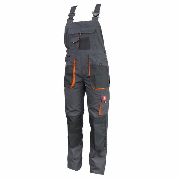 Spodnie robocze ogrodniczki kieszenie wielofunkcyjne bojówki wzmocnienia Oxford powłoka PU branża budowlana remontowa mechanicy szare stalowe pomarańc