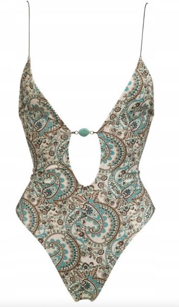 Wiązany strój jednoczęściowy kąpielowy z głębokim dekoltem szpic kobiecy S
