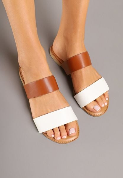 Białe Minimalistyczne Klapki na Płaskiej Podeszwie z Podwójnym Paskiem Dorese