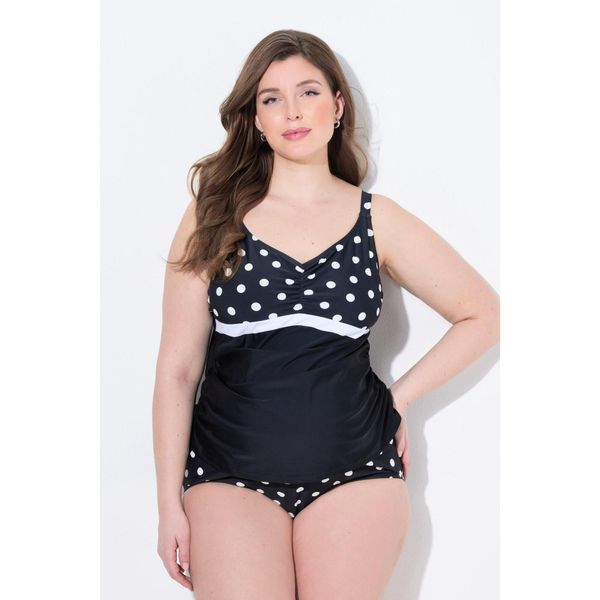 Plus size, tankini Bellieva, góra bez miękkich miseczek, kropki Ocena: Tags: Kobieta Odzież damska Kostiumy kąpielowe Bikini, kostiumy dwuczęściowe Kolor: Czarny Rozmiar: 44 L Przeznaczenie: female Marka: ULLA POPKEN
