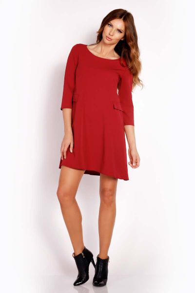 Bordo Sukienka Mini z Patkami Imitującymi Kieszenie