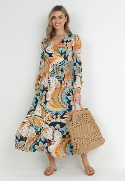 Zwiewna sukienka w fantazyjny wzór to must-have na ten sezon! Nie posiada podszewki. Z tyłu, na wysokości talii marszczona gumka.