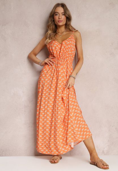 Pomarańczowa Sukienka Maxi na Ramiączkach z Wiskozy Satha