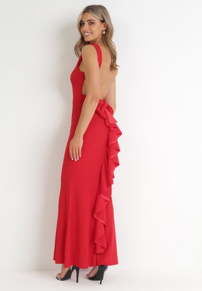 Czerwona Sukienka z Ozdobną Falbanką i Odkrytymi Plecami Naressa