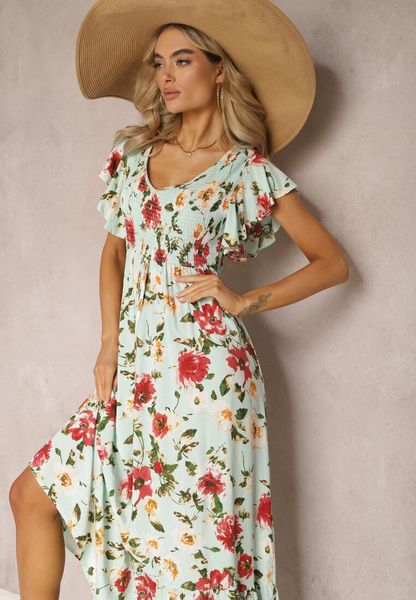 Jasnozielona Wiskozowa Sukienka w Kwiatowy Print Rozkloszowana Maxi Veradisia