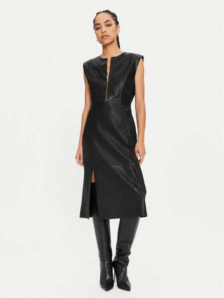 Bruuns Bazaar Sukienka skórzana Agathea BBW4183 Czarny Slim Fit