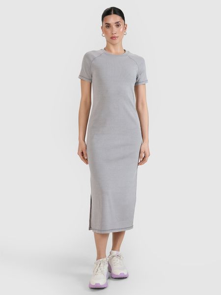 4F Sukienka midi z prążkowanej dzianiny damska – szara S