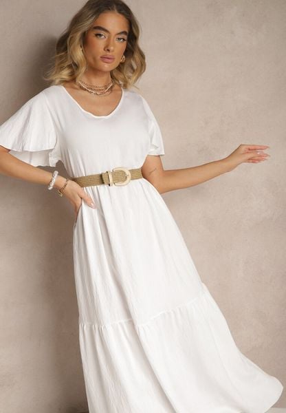 Biała Wiskozowa Sukienka Rozkloszowana Natonia