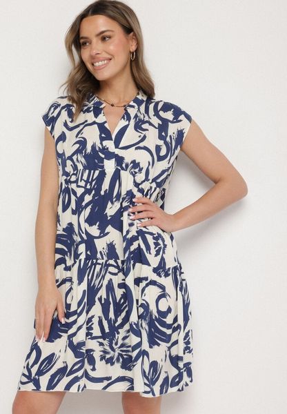 Niebieska Bawełniana Sukienka z Abstrakcyjnym Wzorem Lioraia