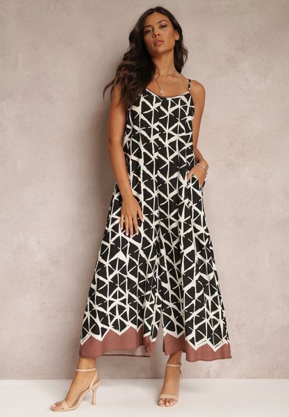 Czarny Wiskozowy Kombinezon w Geometryczne Wzory na Ramiączkach Evera