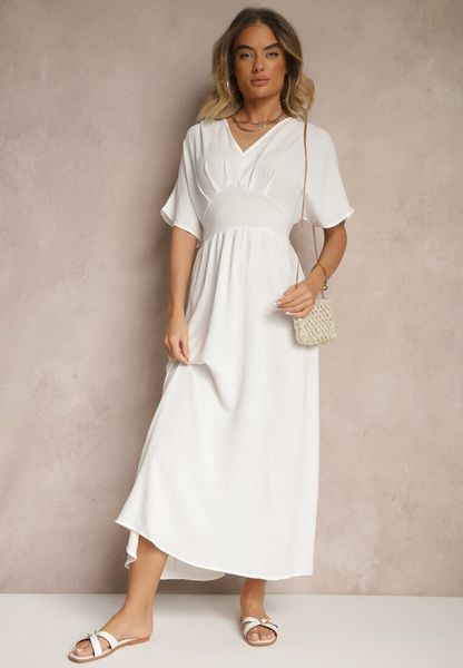 Biała Sukienka o Rozkloszowanym Kroju z Gumką w Talii Iffine