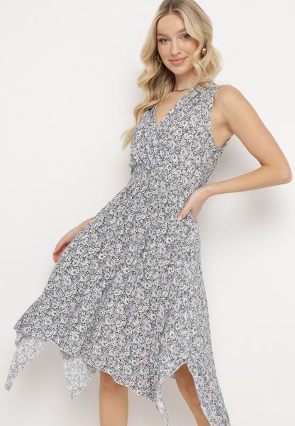 Niebieska Sukienka Boho z Gumką w Pasie i Asymetrycznym Dołem z Wiskozy Anorissa