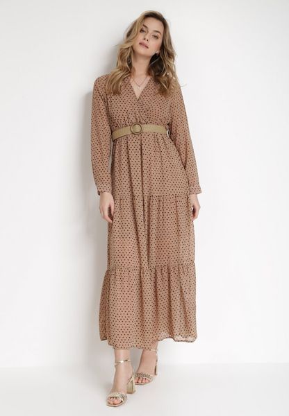 Ciemnobeżowa Sukienka Z Paskiem Deinene