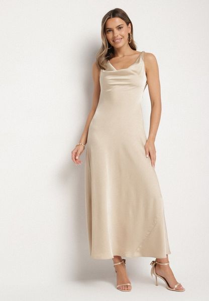 Beżowa Sukienka Vices z Ozdobnym Tyłem i Wiązaniem Zimea
