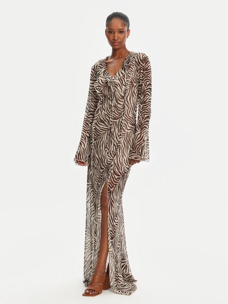 Haveone Sukienka wieczorowa AVS-N043 Brązowy Slim Fit