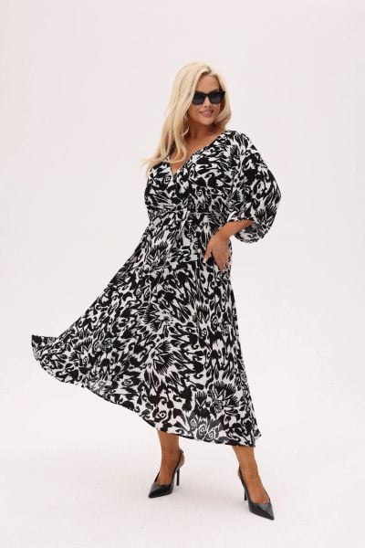 Sukienka Noelia – Safari – w kontrastowe czarno-białe wzory PLUS SIZE XXL OVERSIZE