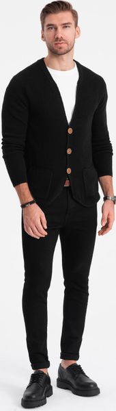 Ombre Sweter męski strukturalny kardigan z kieszeniami – czarny V1 OM-SWCD-0109 S