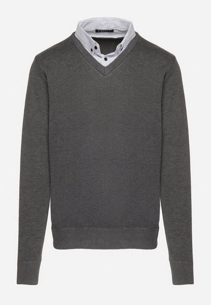 Sweter męski z dekoltem "w serek" z koszulowym kołnierzykiem - grafitowy V3