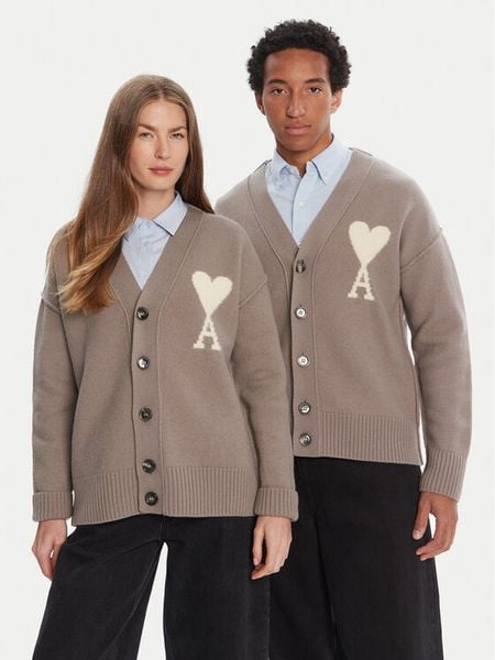 AMI Paris Kardigan UKC090.KN0090 Szary Relaxed Fit