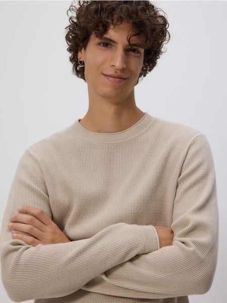 Strukturalny sweter z bawełny – kremowy