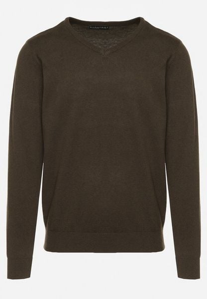 Sweter męski z dekoltem "w serek" z koszulowym kołnierzykiem - ciemnooliwkowy V5