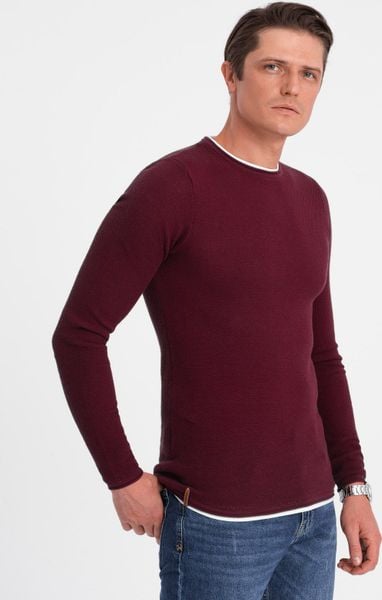Ombre Bawełniany sweter męski z okrągłym dekoltem – bordowy V8 OM-SWSW-0103 S