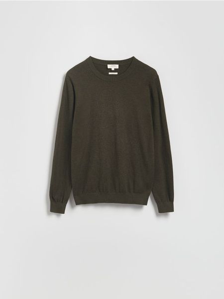 Sweter o luźnym kroju, wykonany z dzianiny z domieszką kaszmiru.