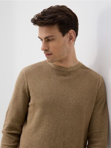 Sweter o prostym kroju, wykonany z bawełnianej dzianiny.