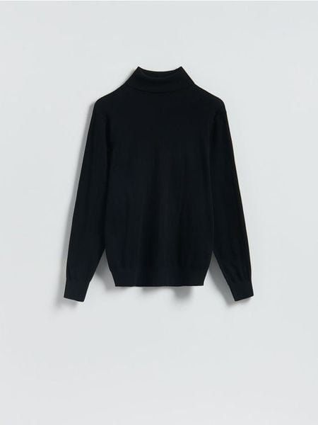 Sweter o luźnym kroju, wykonany z bawełny i domieszki kaszmiru.