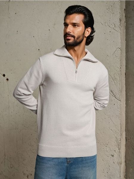 Bawełniany sweter z wysokim kołnierzem – beżowy