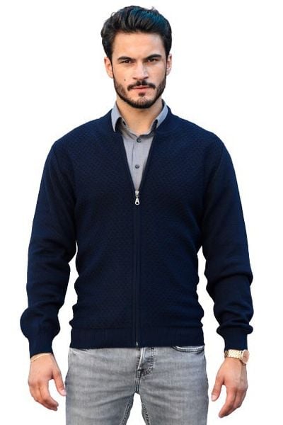 Granatowy rozpinany sweter męski kardigan z wełny merino SL04 Antonio