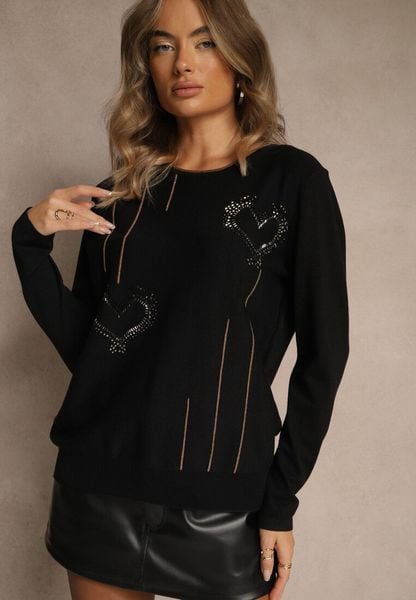 Czarny Sweter z Cyrkoniowymi Sercami Unorevia