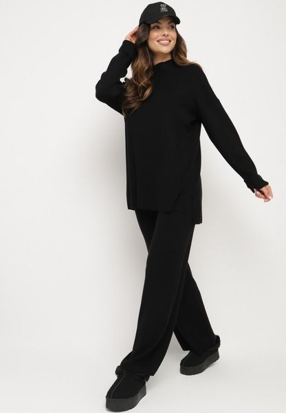 Czarny Dzianinowy Komplet z Wiskozą Sweter i Spodnie z Rozcięciami i Gumką w Pasie Malwizelle