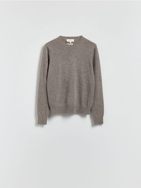 Sweter o prostym kroju, wykonany z dzianiny z wełną merino i dodatkiem kaszmiru.
