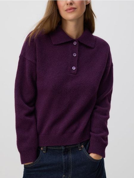 Sweter o swobodnym fasonie, wykonany z dzianiny z domieszką wełny.
