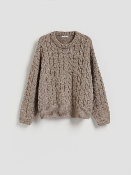 Sweter o swobodnym fasonie, wykonany z dzianiny.