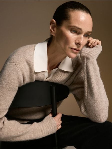 Sweter o swobodnym kroju, wykonany z dzianiny z wełną i alpaką.