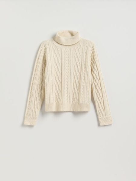Sweter z warkoczowym splotem – kremowy