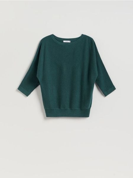 Sweter o luźnym kroju, wykonany z dzianiny z domieszką wełny.