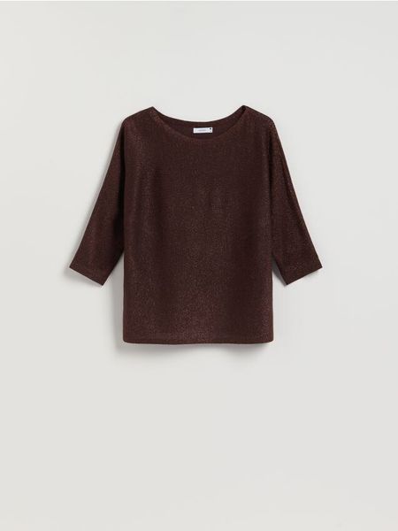 Sweter o luźnym kroju, wykonany z wiskozy z dodatkiem metalizowanej nici.