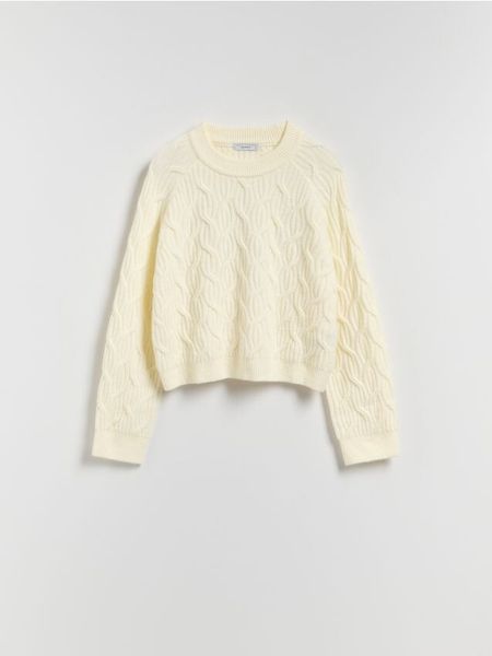 Sweter o prostym kroju, wykonany ze strukturalnej dzianiny.