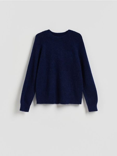 Sweter o prostym kroju, wykonany z dzianiny z wełną i dodatkiem alpaki.